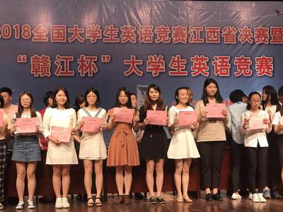 在5月21日结束的2018年全国大学生英语竞赛江西赛决赛暨“赣江杯”大学生英语竞赛中,我校选手发挥出色,多点开花,共计获得各组别和各奖项的特等奖18个,数量达历年之最。其中,在AB组(研究生、英语专业本专科组)组别中,我校外国语学院学子梅玉欣、蒋玉琴的综合、听力以及口语三项成绩综合排名位列该组第一、二名,表现出不俗的实力。另外我校选手还获得11个一等奖,8个二等奖。我校选手总体表现优秀,获得1个团体二等奖,2个团体三等奖。在大赛设置的9个团体奖中,我校拿到了其中3项,充分展示了我校学子的英语综合能力和素质。