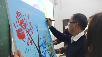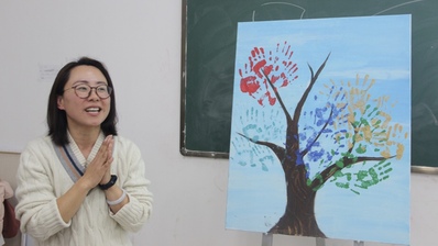 班会中,张颖用树来形容学生大学期间的成长,并用树的果实来形容多彩的大学生活。同学们就信仰、能力、追求、情感、活力五方面进行微班会展示,并在树上留下红、蓝、金、青、绿的手印来代表成长的收获。