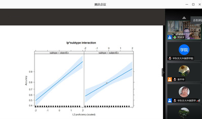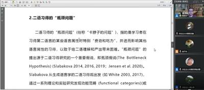 2020年9月1日上午9:00,上海交通大学外国语学院博士生导师吴诗玉教授应邀为我院师生带来了一场题为“中国学习者英语学习的瓶颈问题:来自于两个英语语法构式习得的证据”的学术报告。本次报告会采用网络视频的方式进行,报告由外国语学院副院长袁平华教授、樊梦博士和胡永祥博士共同主持,200多名校内外师生参与聆听。