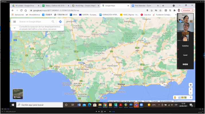 6月24日下午,华东交通大学外国语学院英西复语专业与西班牙马德里康普顿斯大学联合举办了一场别开生面的交流活动,为师生提供了一个多元化的交流平台。此次活动以线上形式展开,外国语学院黄冰老师、17级韦嘉玉 、18级刘丽兰、彭星雨、19级胡景孜、20级钟晓瑜、刘宇慧、胡智怡等同学参与了此次交流。