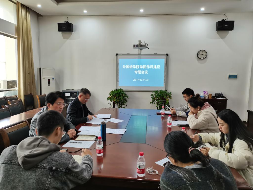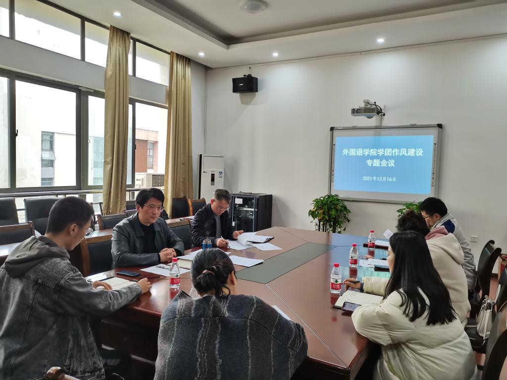 此次外语学院学团作风建设专题会议的召开,将引导广大学团干部弘扬新风正气,消除作风积弊,大兴忠诚老实之风、担当实干之风,为把我院建设的更加美好提供坚实的作风保证。