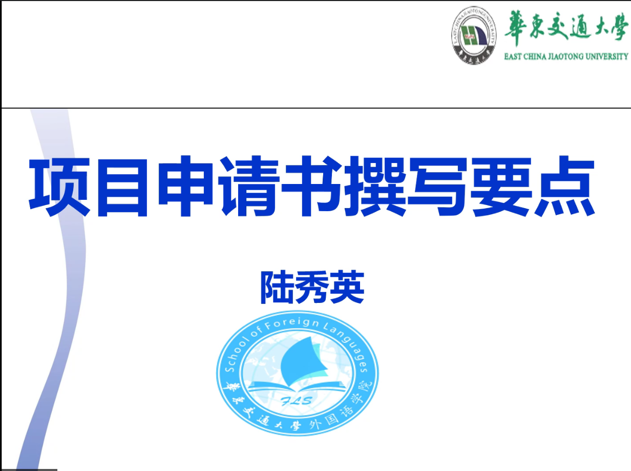 一年一度的国家社科基金项目申报工作拉开序幕。为了提高外语学院中青年教师申报课题的积极性和申报书的撰写质量,2022年1月13日下午,外语学院副院长陆秀英教授结合自己国家社科基金项目申请书的撰写情况,在线向学院教师详细分享了国社科项目申请书每个板块的撰写要点以及注意事项。同时,她还补充分享了一些专家所总结的国家社科基金项目申请书撰写经验。参加讲座的教师纷纷表示此次分享交流收获满满,深受启发。
