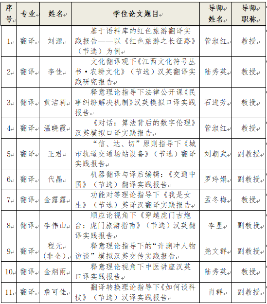 根据学校《关于做好2023年6月拟毕业研究生学位论文答辩工作的通知》中要求,经过答辩学生抽签、学院确认、研究生院审核,确定了我院2023年翻译硕士学位论文答辩工作安排,具体内容如下: